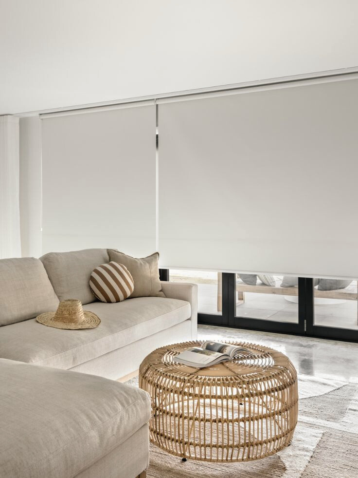 Roller blinds with blackout fabric, ideal for complete light control and privacy.