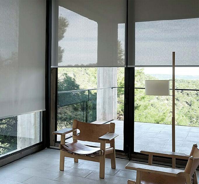 Screen blinds available in multiple colors with different light transmission properties.